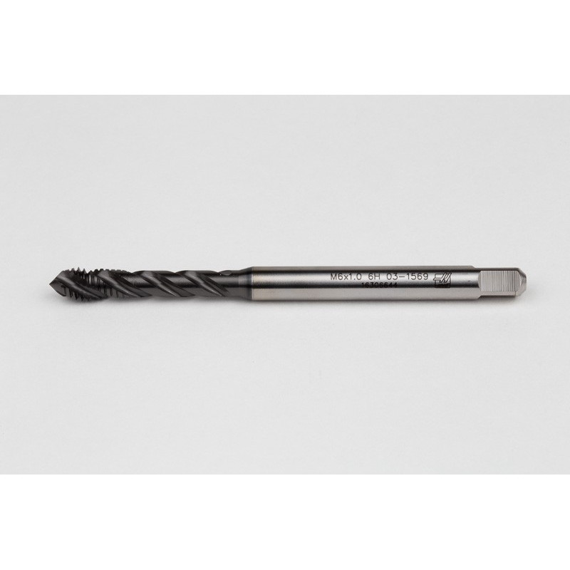 M6x1.0 M HSS-E Spiral Flute Tap, 6mm Shank x 10mm Thread Length, 2.5XD, Mod. Bottoming, 3 Flute, 6H, Hardslick Coated