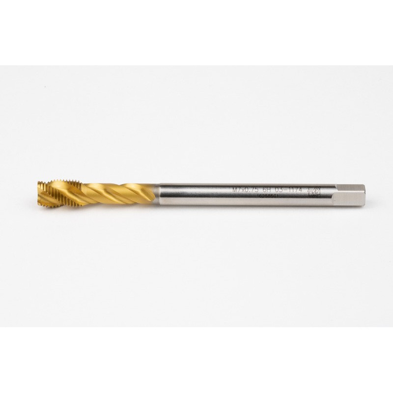 M7x0.75 MF HSS-E Spiral Flute Tap, 5.5mm Shank x 10mm Thread Length, 2.5XD, Mod. Bottoming, 3 Flute, 6H, TiN Coated