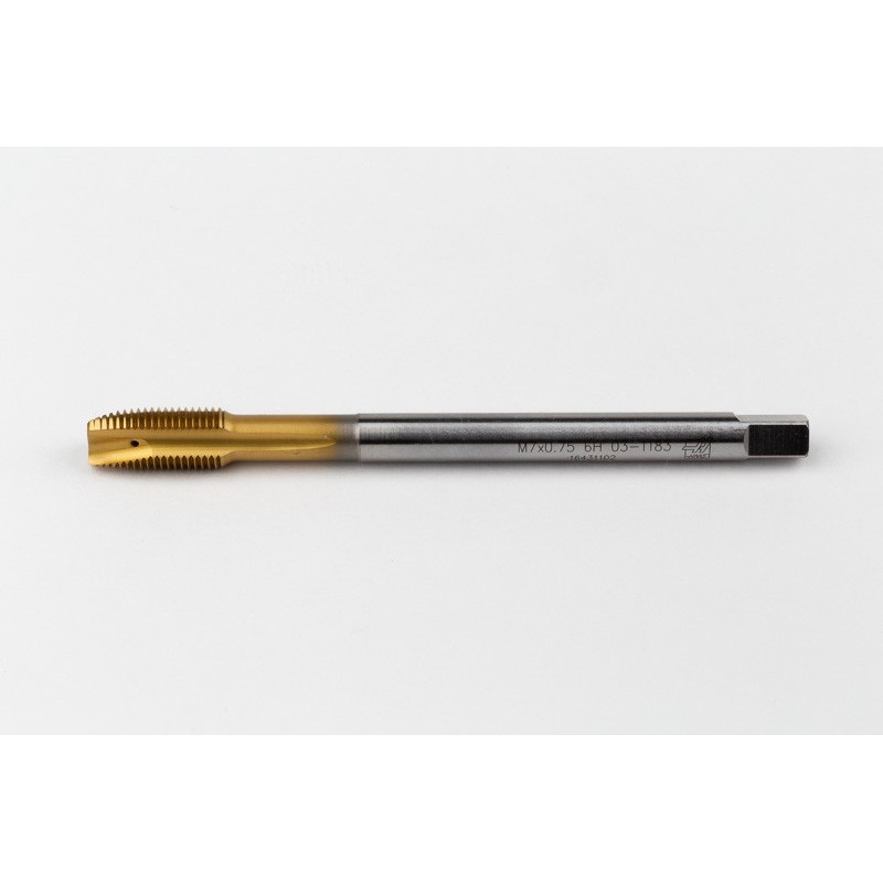 M7x0.75 MF HSS-E Spiral Point Tap, 5.5mm Shank x 14mm Thread Length, 3XD, Plug, 3 Flute, 6H, TiN Coated