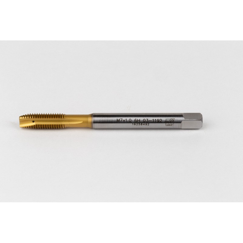 M7x1.0 M HSS-E Spiral Point Tap, 7mm Shank x 17mm Thread Length, 3XD, Plug, 3 Flute, 6H, TiN Coated