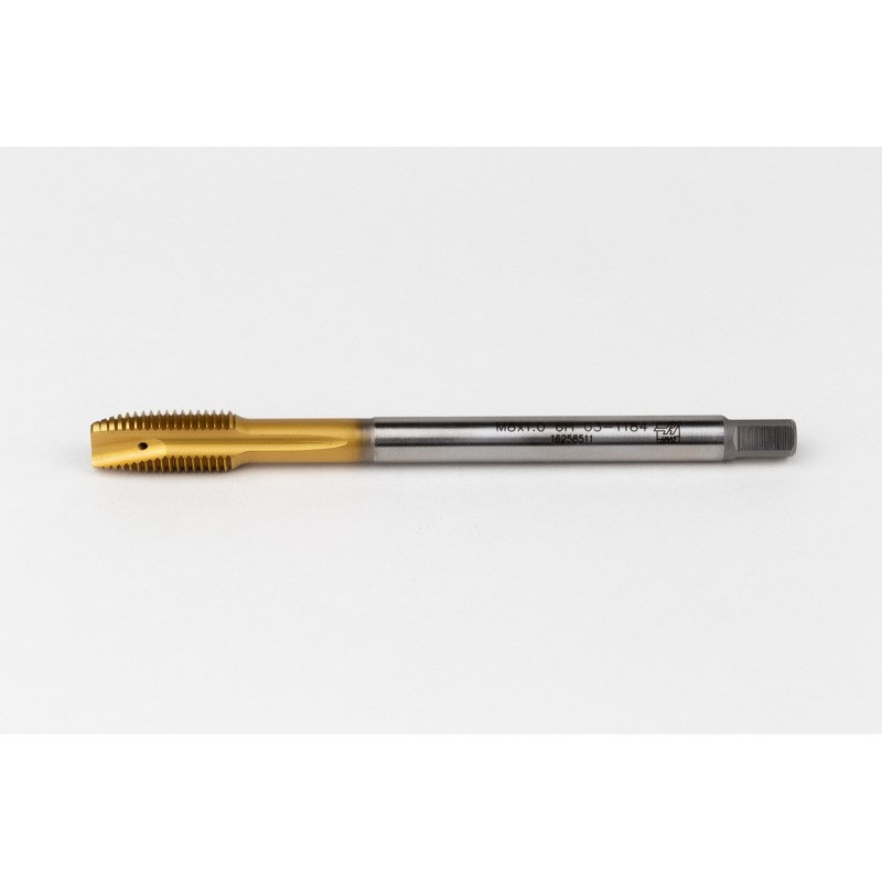 M8x1.0 MF HSS-E Spiral Point Tap, 6mm Shank x 17mm Thread Length, 3XD, Plug, 3 Flute, 6H, TiN Coated