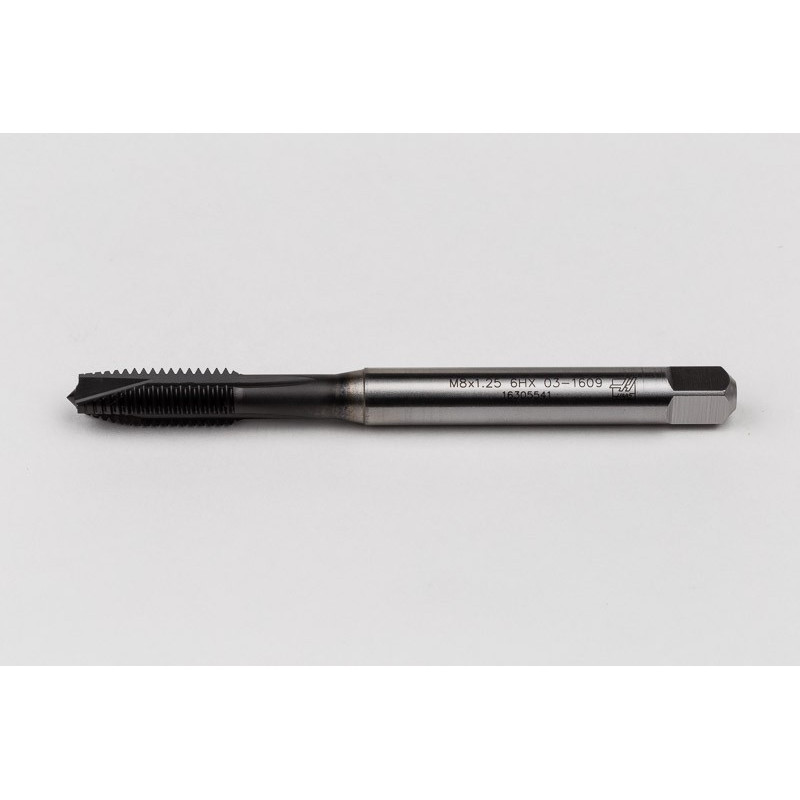 M8x1.25 M HSS-E Spiral Point Tap, 8mm Shank x 20mm Thread Length, 3XD, Plug, 3 Flute, 6HX, Hardslick Coated