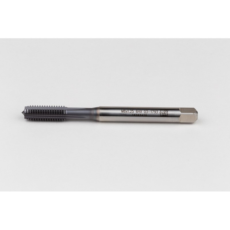 M8x1.25 M HSS-E Straight Flute Tap, 8mm Shank x 20mm Thread Length, 2XD, Mod. Bottoming, 4 Flute, 6HX, TiCN Coated