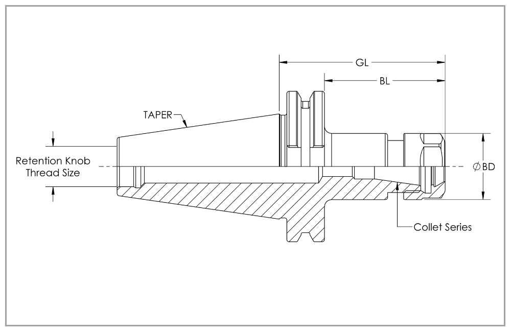 SK40/DIN ER16 Collet Chuck x 70mm Gage Length, TSC