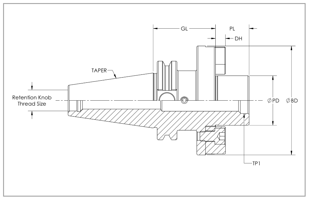 SK40/DIN Shell Mill Holder, 32mm Pilot Diameter x 50mm Gage Length, TSC