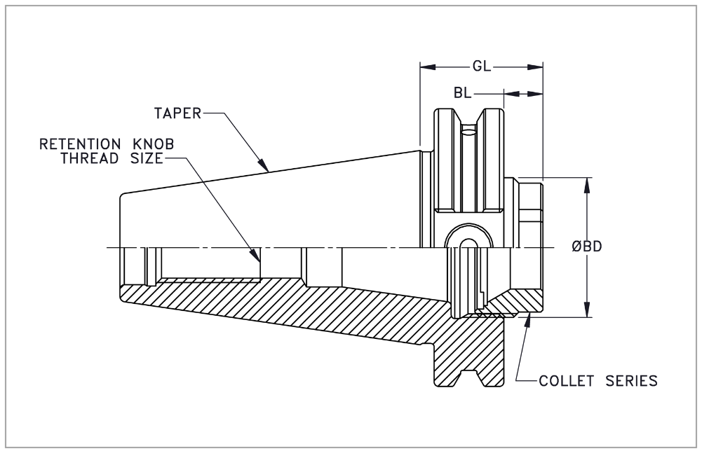 SK40 ER25 Collet Chuck x 28mm Gage Length, TSC