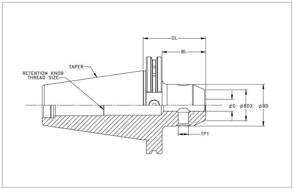 SK50 12mm End Mill Holder x 63mm Gage Length, TSC