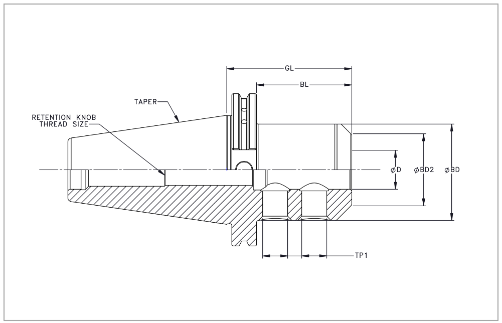 SK50 25mm End Mill Holder x 80mm Gage Length, TSC