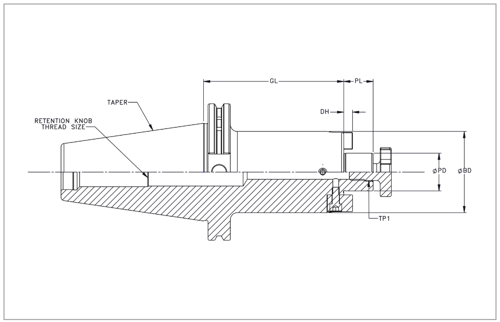 SK50 Shell Mill Holder, 27mm Pilot Diameter x 100mm Gage Length, TSC